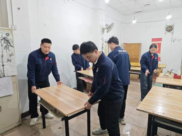 裝備試驗(yàn)事業(yè)部團(tuán)支部的團(tuán)員們帶著勞動(dòng)工具來(lái)到退休辦,分為三組展開(kāi)服務(wù):搬運(yùn)組的團(tuán)員們依次將漏水房間的桌椅搬至活動(dòng)室,并整齊擺放在指定位置;清潔組的團(tuán)員們用長(zhǎng)柄掃帚仔細(xì)清理房梁角落的蛛網(wǎng)積塵,連照片縫隙都不放過(guò);慰問(wèn)組的團(tuán)員們傾聽(tīng)老同志們講述公司的發(fā)展故事,現(xiàn)場(chǎng)洋溢著歡聲笑語(yǔ)。
