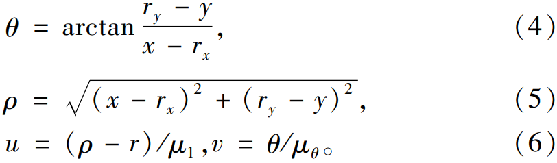 如圖8所示,點(diǎn)P的x,y坐標(biāo)分別表示其距離原點(diǎn)O的水平距離與垂直距離;點(diǎn)P'的坐標(biāo)u,v分別表示點(diǎn)Р在圖8a中相對(duì)圓心(rx,ry)的極角與極徑。